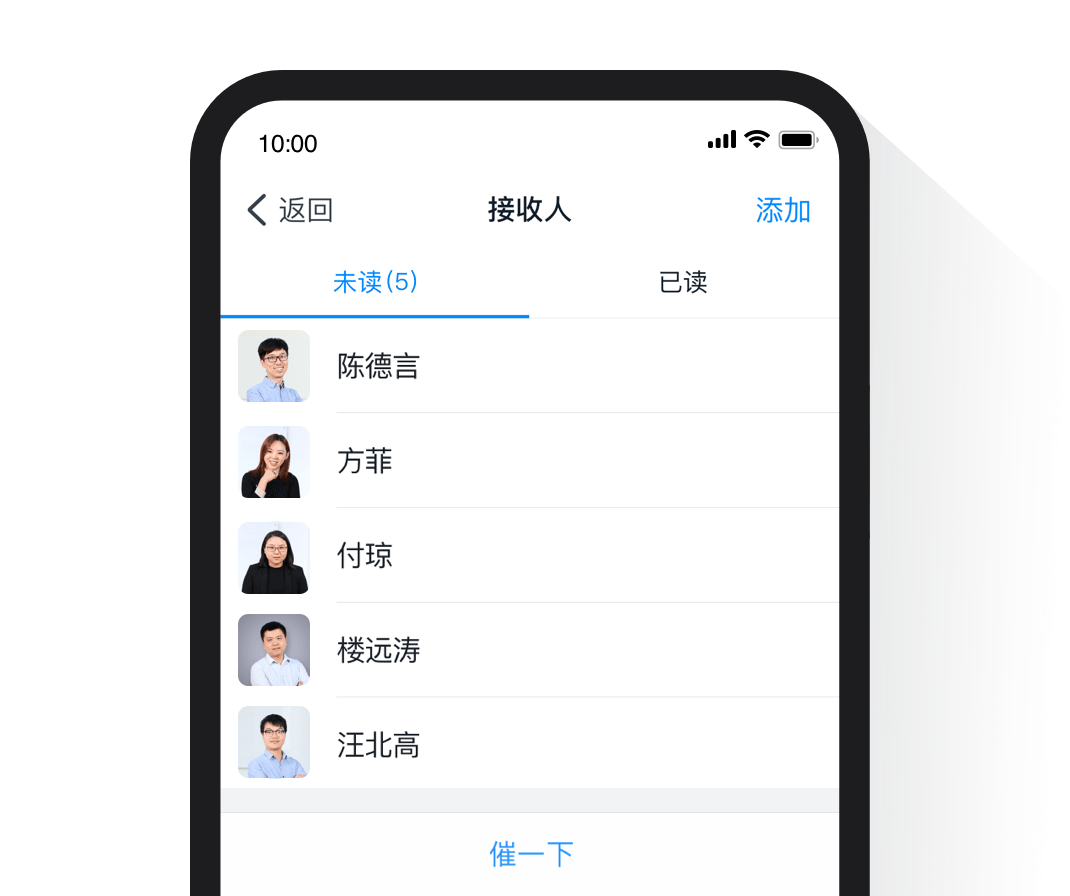消息支持查看已讀未讀,未讀消息可轉DING通知對方,高效傳達。