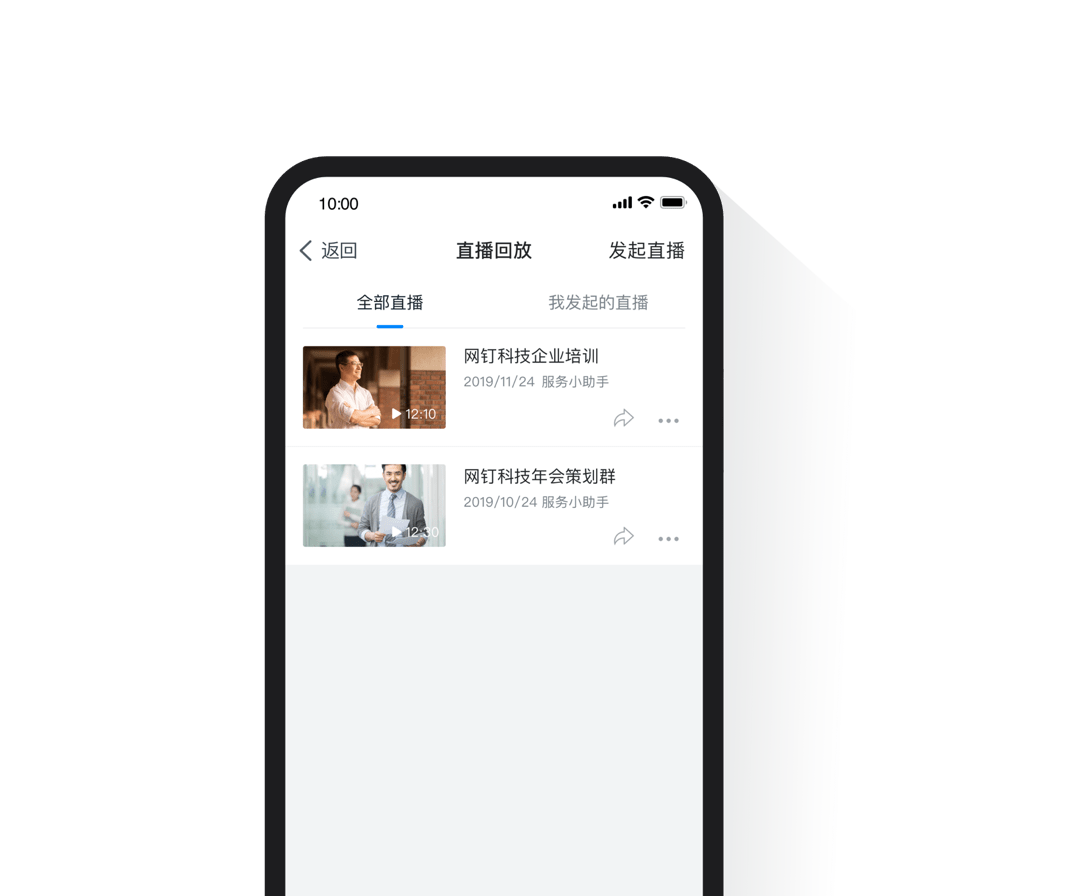 會(huì)議直播用釘釘發(fā)起會(huì)議直播,省去設(shè)備成本,還可將直播范圍控制在企業(yè)內(nèi),更安全更可控。