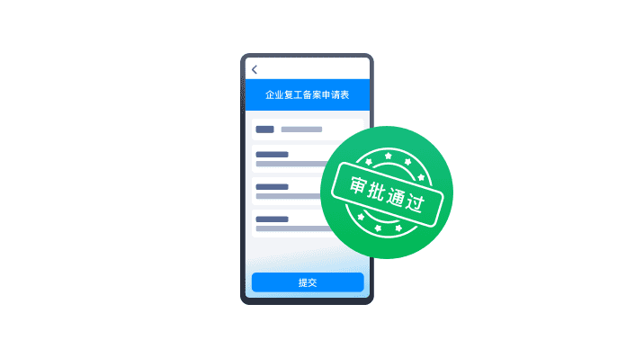 政府復(fù)工備案企業(yè)在線提交復(fù)工申請(qǐng)表,政府統(tǒng)一審核,復(fù)工更高效。