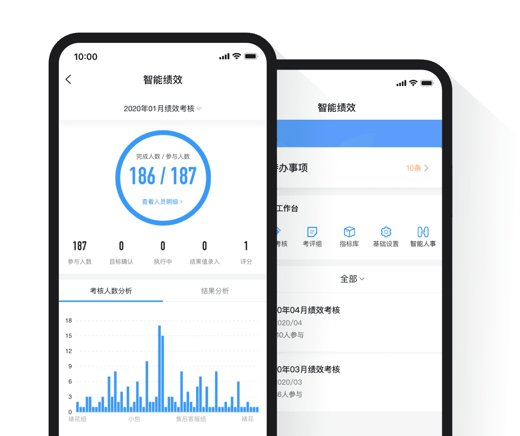 考核管理在線考核、報(bào)表可視, 績(jī)效考核賞罰分明。
