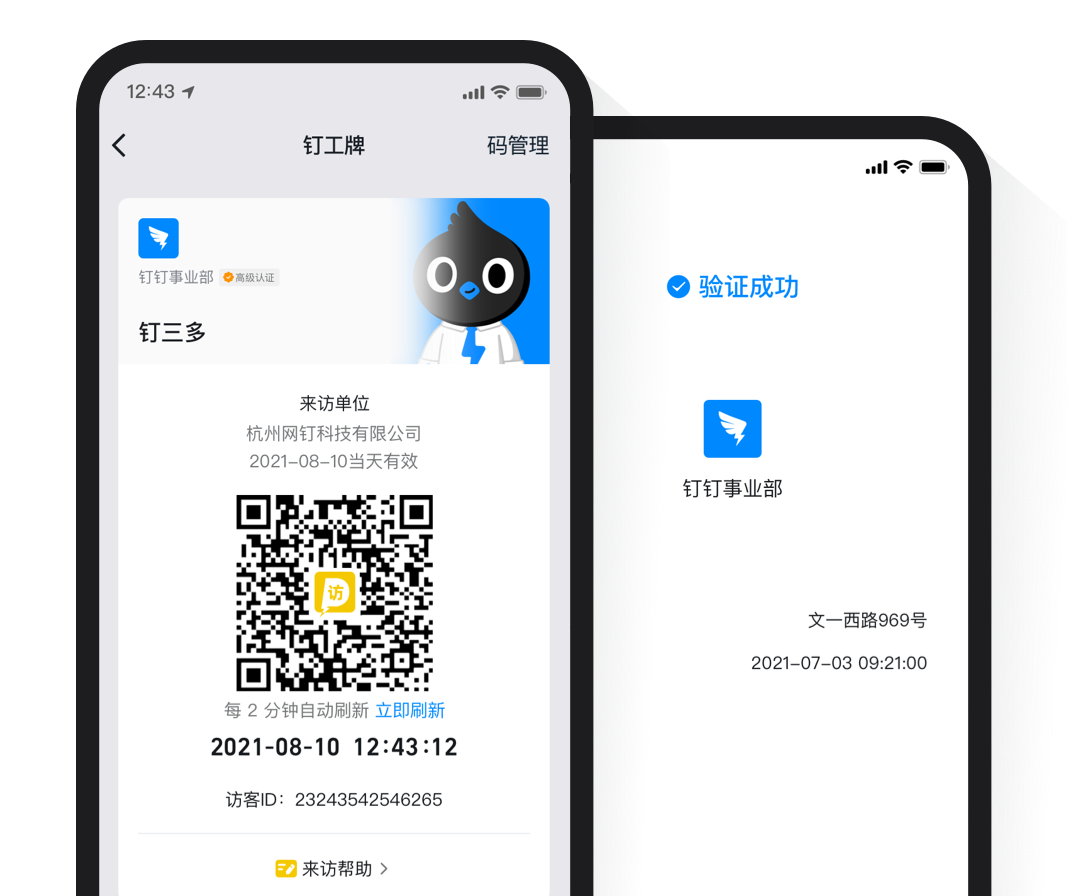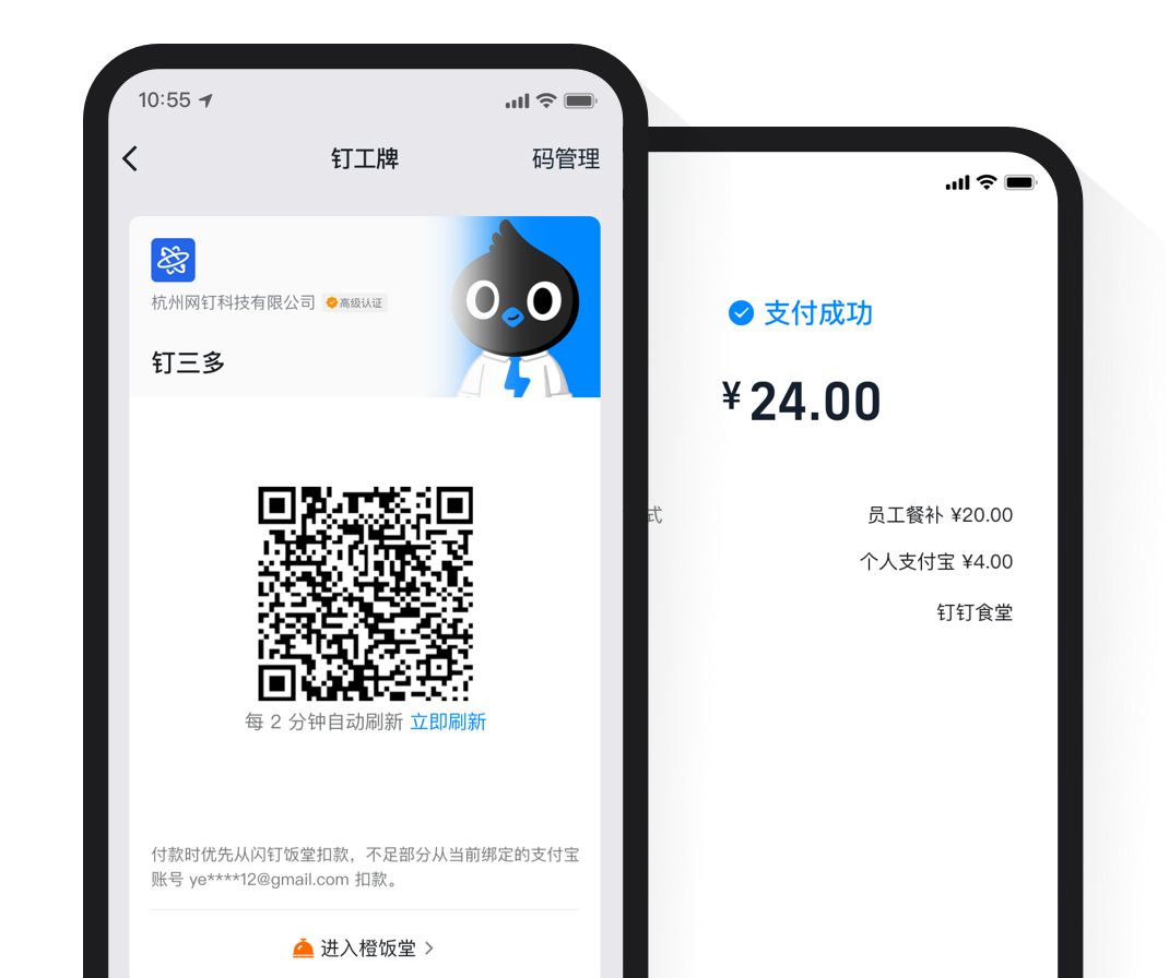 釘工牌 將傳統(tǒng)工牌的身份驗證融合到釘釘上,同時結(jié)合支付能力,滿足組織內(nèi)需要驗證身份和支付的場景。